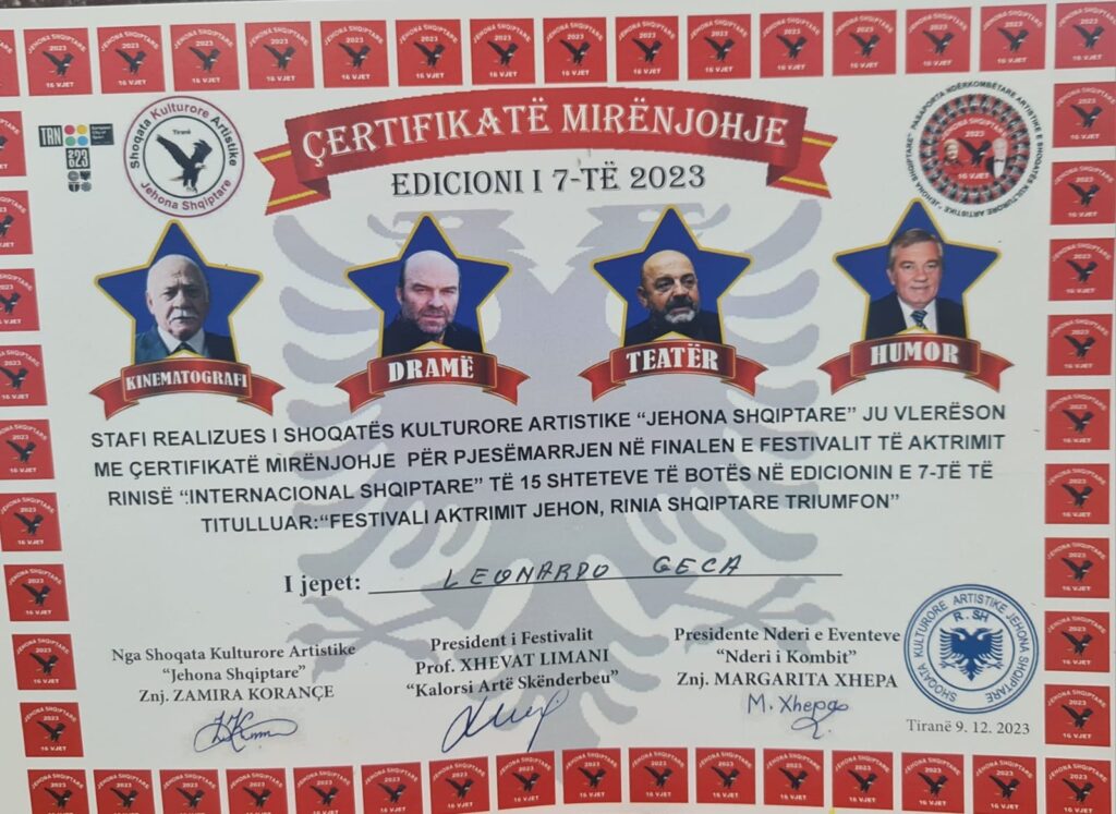 Leonardo Geca është një frymë e shumanshme, e përkushtuar dhe e udhëhequr, që me përkrahjen e prindërve të tij të mrekullueshëm, po ndërton një shteg të sigurt drejt sukseseve të mëdha. Ai është një model pozitiv për të rinjtë dhe një krenari për komunitetin.