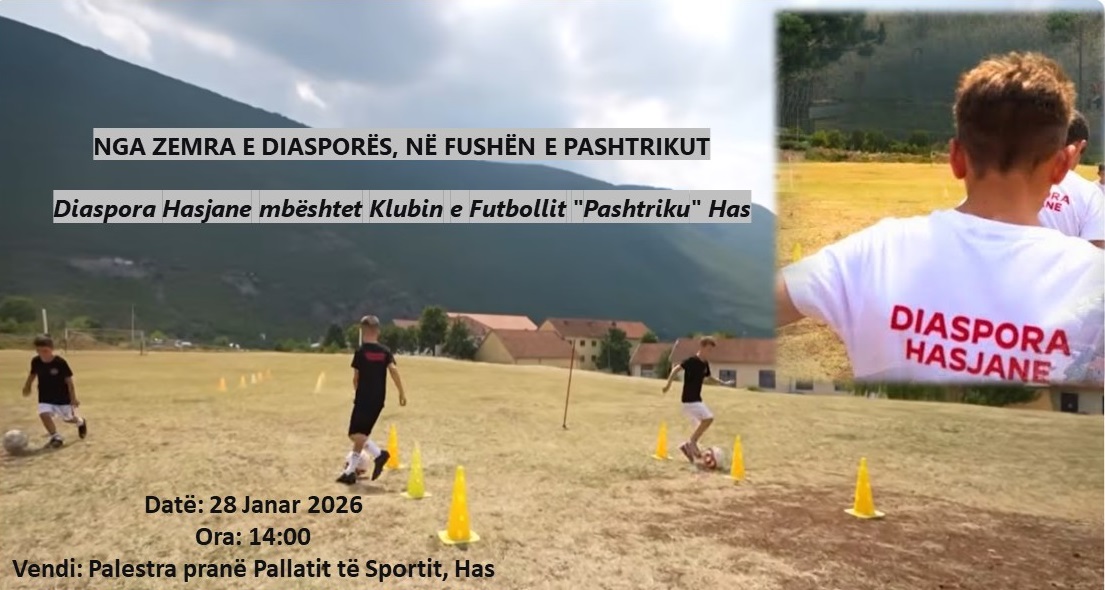 Diaspora Hasjane shpreh angazhimin e plotë për të ndihmuar dhe nxitur zhvillimin e sportit, veçanërisht të futbollit, në qendrën e Hasit. Në kuadër të këtij përkushtimi, do të shpërndahen uniforma dhe mjete sportive për ekipet e futbollit të grupmoshave U11 dhe U13 të Klubit “Pashtriku” Has.